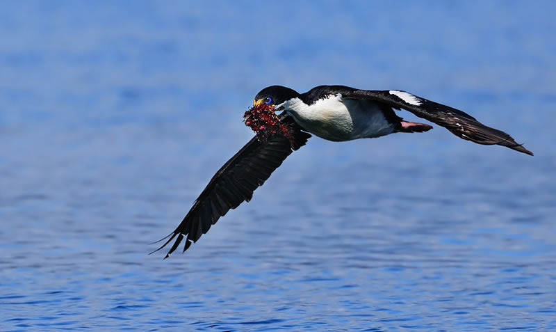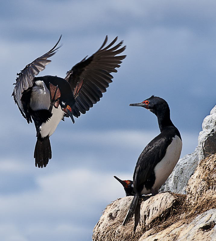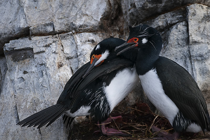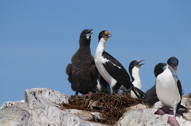 Bird Island is a rocky headland surrounded by water where a colony of king shags and imperial shags lives all year long. During summer, we can see them nesting. We can also find kelp gulls, dolphin gulls, snowy sheathbills, flightless steamer ducks, and South American terns among the shags.